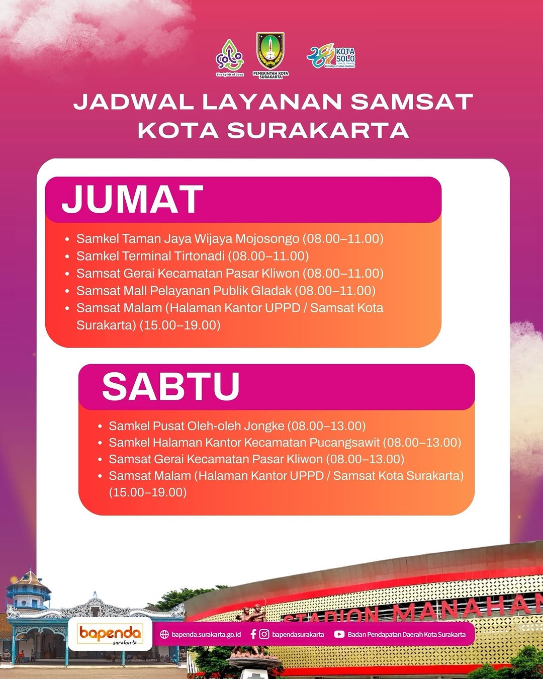 Jadwal Jum'at dan Sabtu Layanan Samsat Kota Surakarta