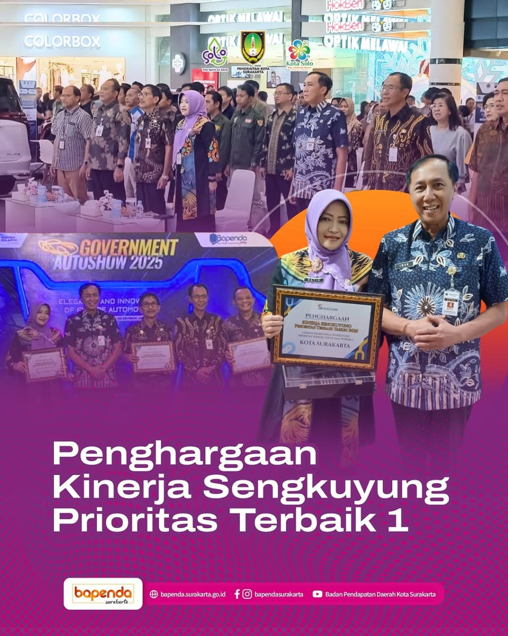 Pemerintah Kota Surakarta melalui Badan Pendapatan Daerah Kota Surakarta kembali menorehkan prestasi membanggakan pada Tahun 2025 dalam rangka kegiatan Government Auto Show (GAS) 2025 yang diselenggarakan bersamaan dengan SAMSAT Digital Award 2025 di CitraLand Mall Semarang, Pemerintah Kota Surakart...