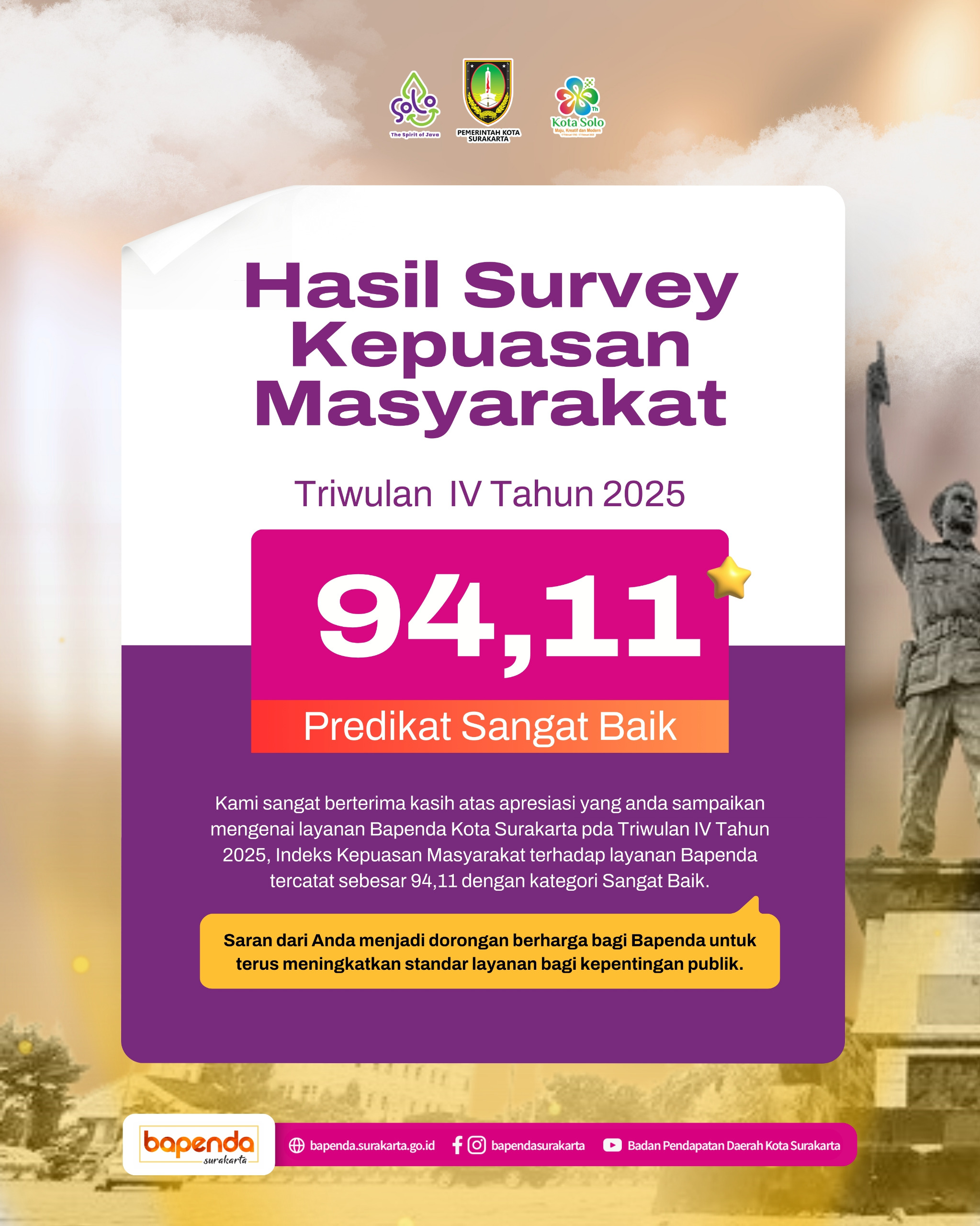 Survei Kepuasan Masyarakat Terhadap Penyelenggaraan Pelayanan di Bapenda Kota Surakarta Triwulan IV Tahun 2025